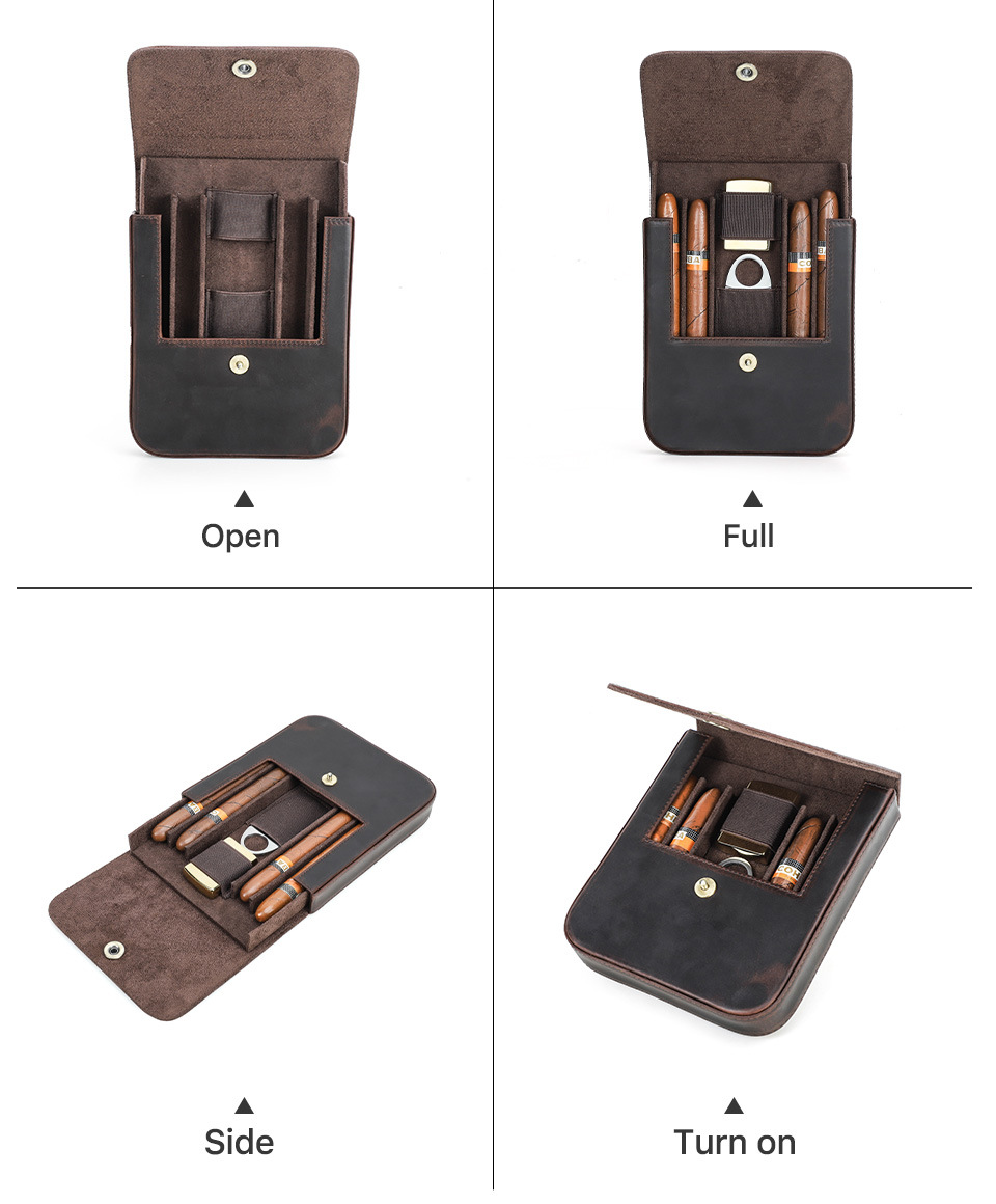 Four-Cigar Magnetic Buckle Clamshell Leather Pouch